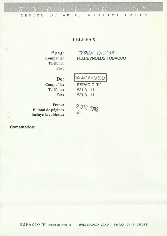 [Carta], 1992 dic. 9, Madrid, a John Wallas, R. J. Reynolds Tobacco Ver todo items con este valor.